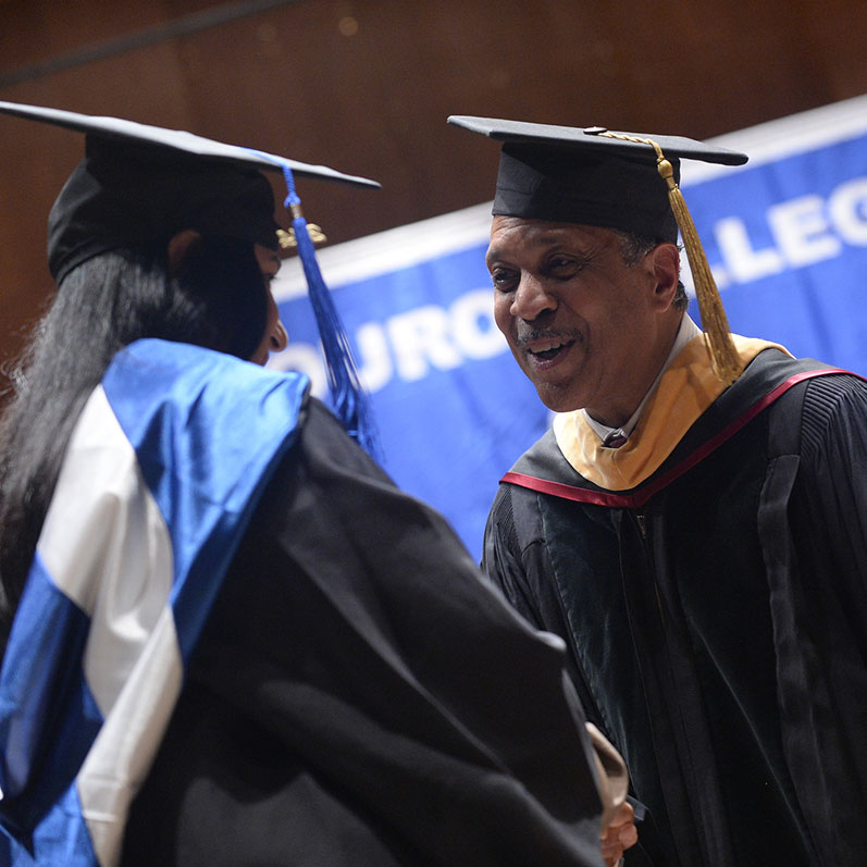 Dr. Jana B. Woodhouse, an award-winning certified financial advisor and business owner, delivered the commencement address. Among the first African American women to work on Wall Street as a full-service broker and options trader, Dr. Woodhouse acknowledged that going into the workforce can be challenging, but she urged the graduates to aim high and aspire to management positions.